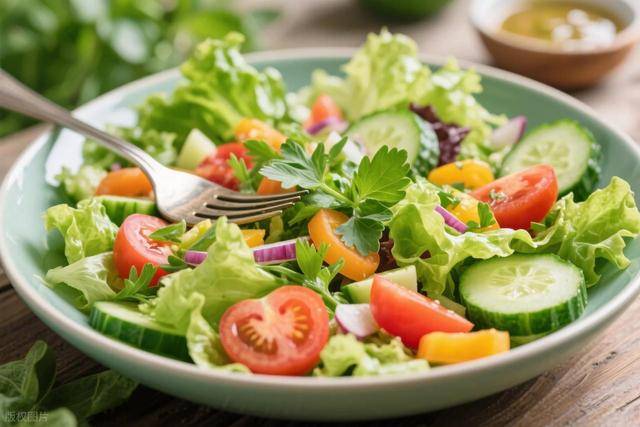 很多人认为蔬菜沙拉的低热量的减脂餐,蔬菜沙拉富含膳食纤维,可以增加饱腹感,让我们在摄入较少热量的同时,延长饱腹感的时间,减少其他高热量食物的摄入,还能促进肠道蠕动,预防便秘,有助于身体排出毒素。