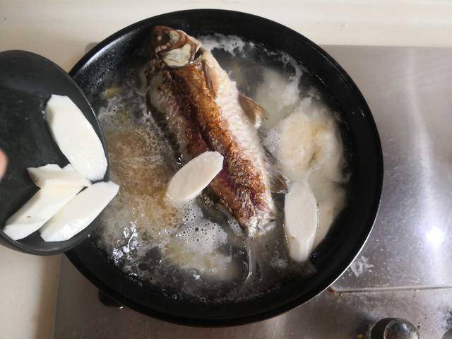 推荐菜谱【鲫鱼山药汤】 原料: 鲫鱼 1条 铁棍山药1根 姜片 5片 胡椒粉 少许 香菜 1根 油盐 适量