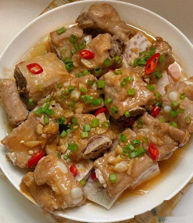 冷水上锅蒸 50 分钟,出锅后可撒葱花(可选)。