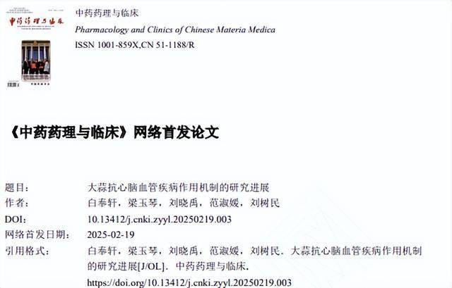 大蒜抗心脑血管疾病作用机制的研究进展,白奉轩,梁玉琴,刘晓禹,范淑媛,刘树民,中药药理与临床,2025-02-19