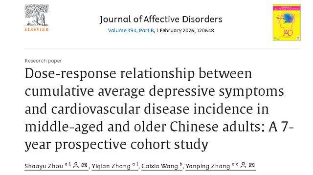 长期心情不好是心脏的“慢性毒药”。2025年11月,《情感障碍杂志》上一项追踪7年的研究发现:抑郁程度越深,心血管病风险越高。即使只是轻度抑郁,长期累积也会显著增加发病风险。