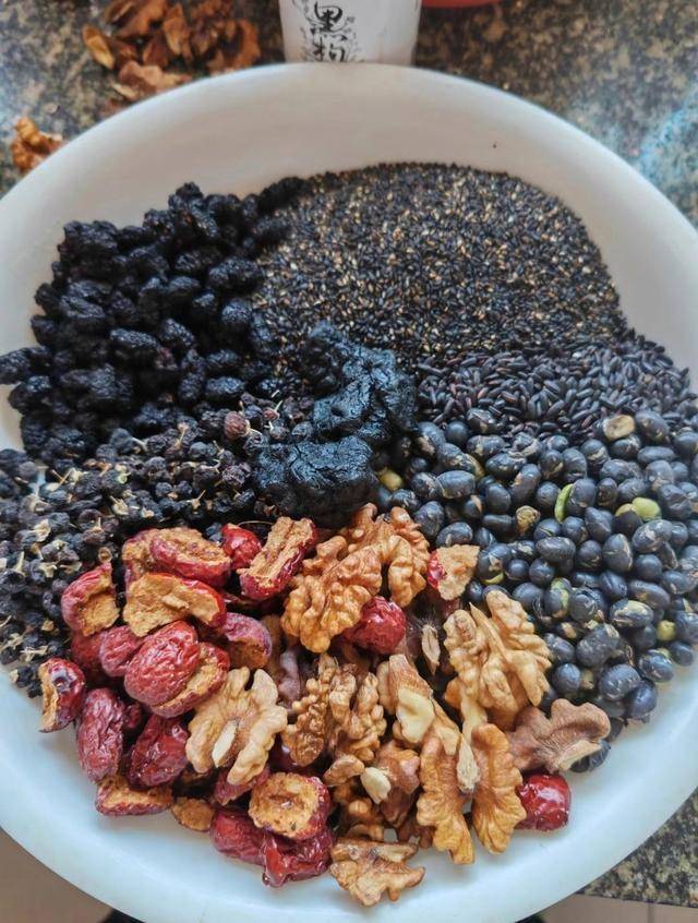 做法:黑豆提前浸泡4小时,核桃仁炒香备用。大米洗净后与黑豆一同放入锅中,加足量清水,大火煮沸后转小火慢煮至黑豆软烂,加入核桃仁和冰糖,继续煮5分钟即可。