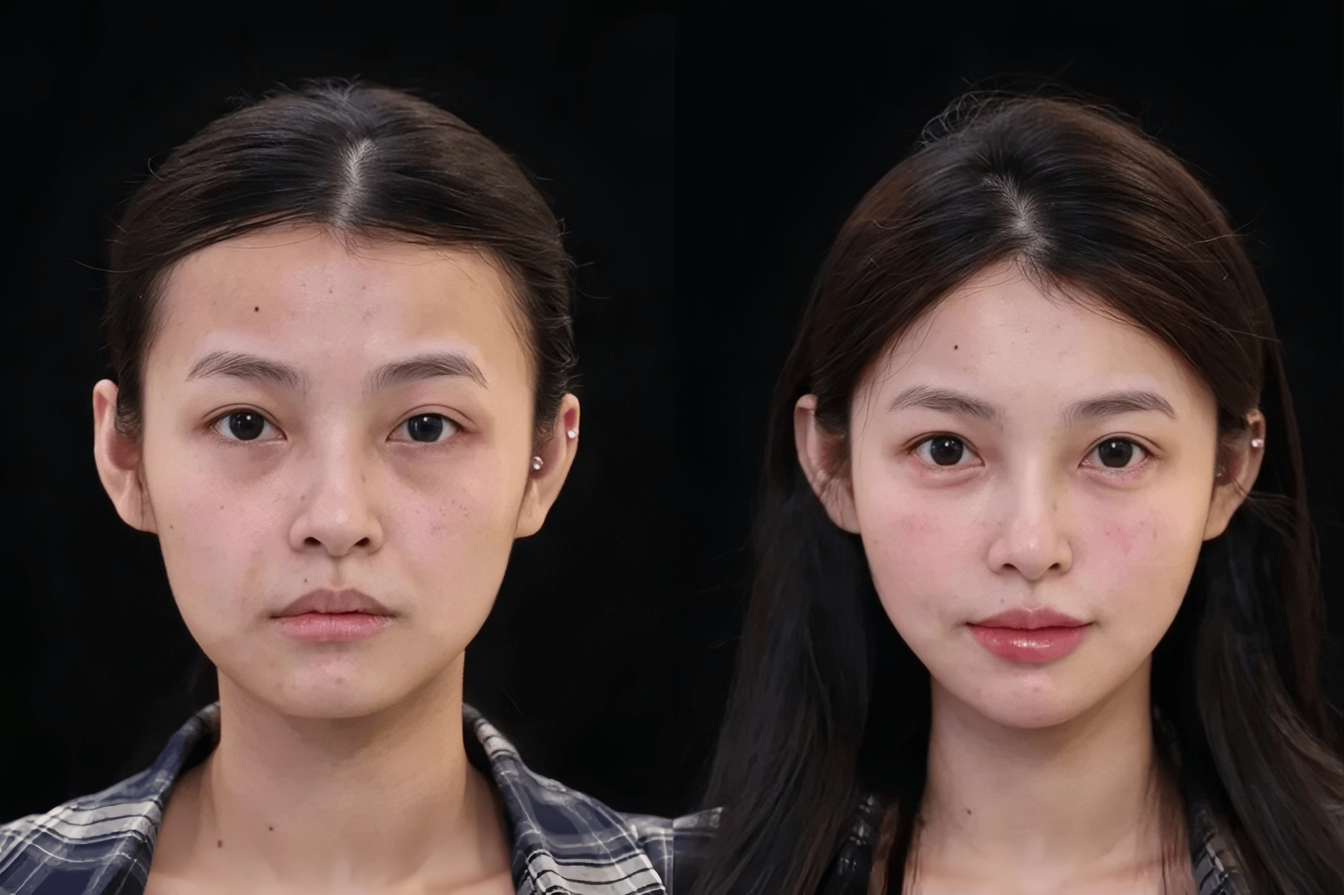 - 容积恢复:针对面中部凹陷、苹果肌下移等问题,使用中分子玻尿酸进行适量填充,恢复面部年轻时的饱满状态。