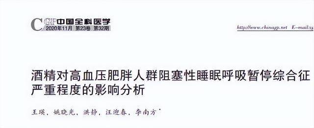 [1]王瑛.酒精对高血压肥胖人群阻塞性睡眠呼吸暂停综合征严重程度的影响分析,中国全科医学,2020-08-19