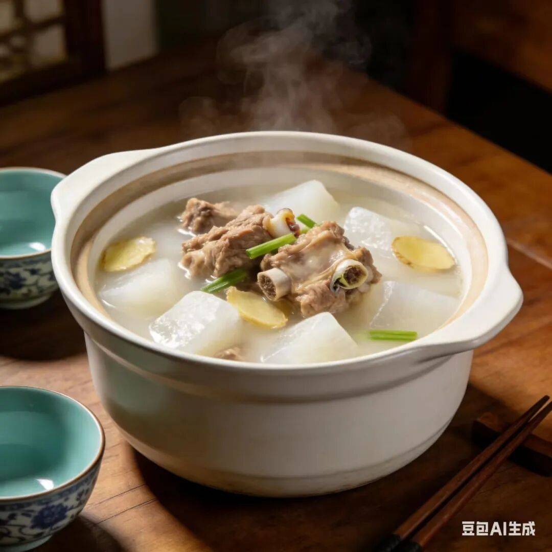 做法:羊肉切块焯水,当归、生姜用纱布包好,与羊肉一同炖煮1.5小时;白萝卜切块放入,煮至软烂后加枸杞,加盐调味即可。