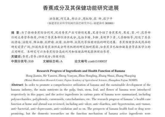[1]洪佳敏.香蕉成分及其保健功能研究进展[J].中国农学通报,2016