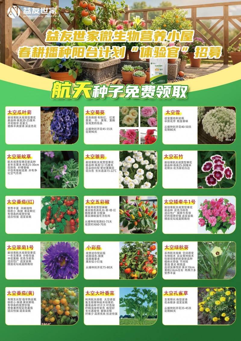 益友世家在农业领域的视野并未局限于当下,而是投向更具系统性与前瞻性的未来。根据规划,益友世家将于2026年引入航天育种材料,并结合微康农业的微生态菌剂种植方案,形成“航天种子+微生物营养”的创新组合。该方案旨在通过复合微生物菌剂进一步改良土壤,促进作物健康生长,探索在阳台种植与大田农业中减少传统农业投入的可行路径。