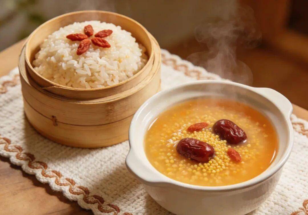 小米能健脾和胃、补益虚损,煮一碗黏稠的小米粥,搭配几颗红枣和桂圆,暖身又暖心,早上喝一碗,一整天都能精力充沛。糯米性温,能温补脾胃,做成香甜的糯米饭,或者煮一锅热气腾腾的腊八粥,既能提供充足的能量,又不会让肠胃觉得胀闷,特别适合作为日常主食,帮助身体平稳度过大寒这个寒冷节气。