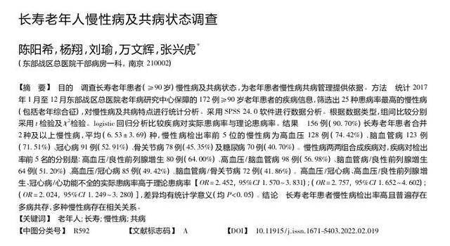 陈阳希.长寿老年人慢性病及共病状态调查,中华老年多器官疾病杂志,2022-02-28