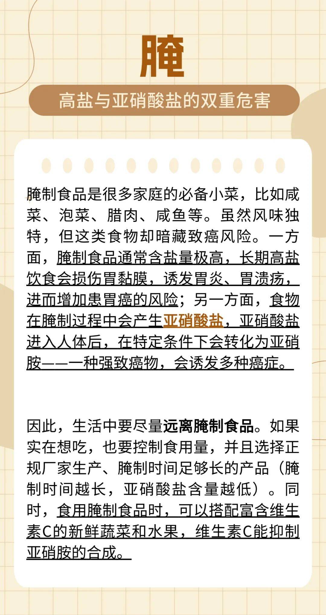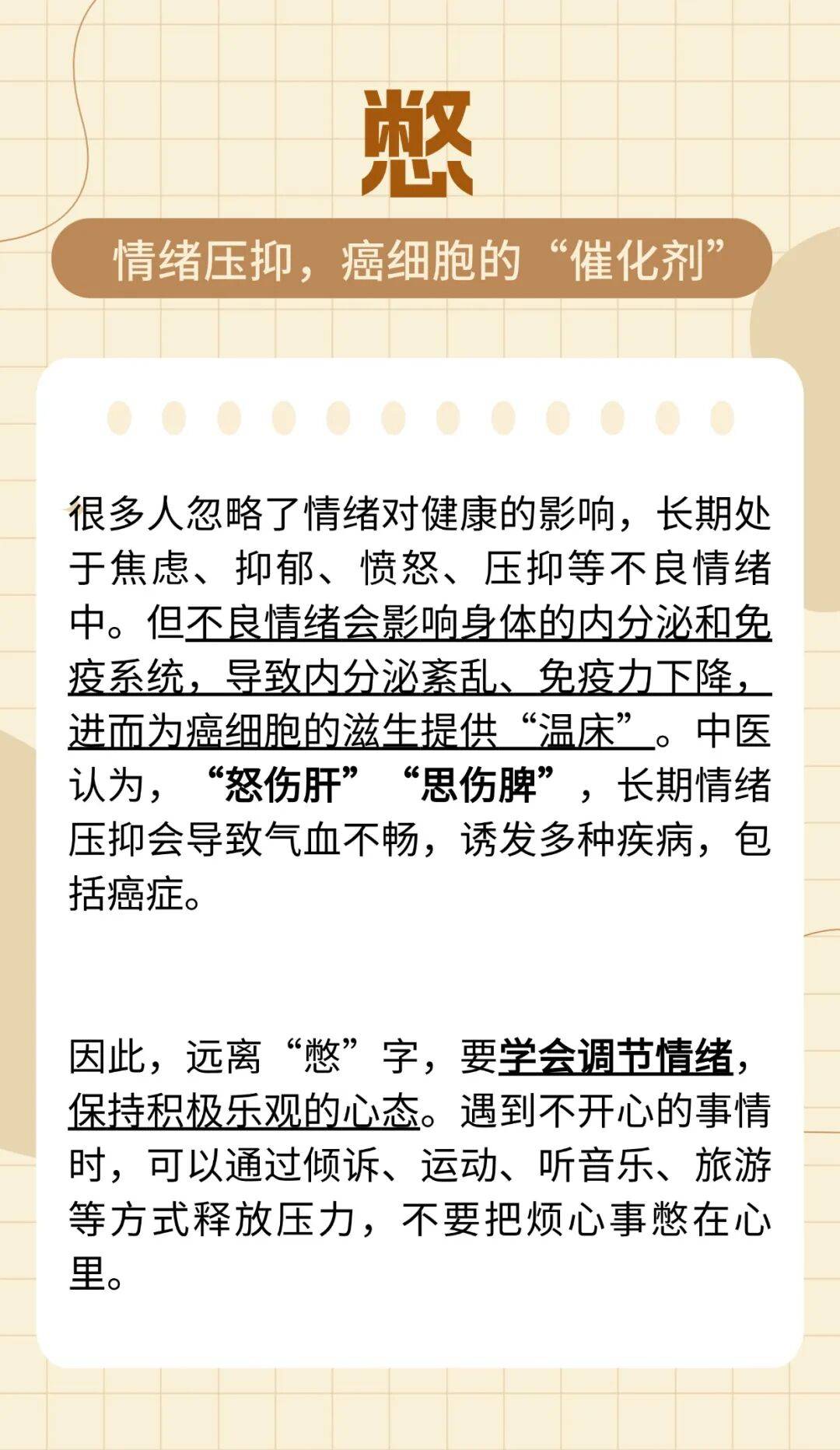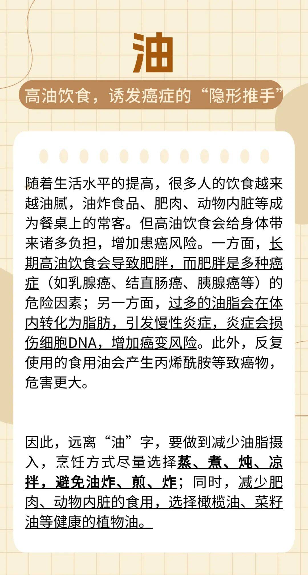 癌症,这个让人闻之色变的词汇,如今已成为威胁人类健康的主要杀手之一。很多人觉得癌症离自己很遥远,却不知它的发生与日常生活习惯息息相关。世界卫生组织研究表明,约40%的癌症可以通过调整生活方式来预防。其中,有8个字堪称“致癌隐患”,若能坚决远离,就能大幅降低患癌风险。