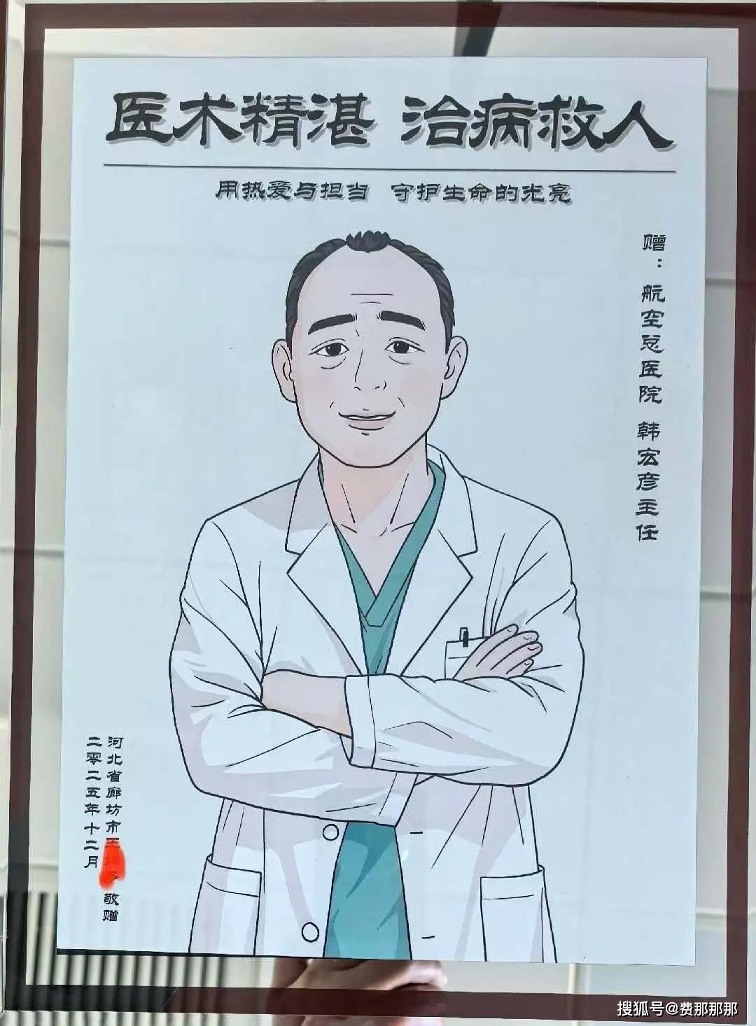 近日,航空总医院神经外一科主任韩宏彦团队收到一份特殊礼物——25岁患者亲手绘制的两幅医师画像。画作分别题有“医术精湛,治病救人——致韩宏彦主任”“医德高尚,杏林春暖——致常嘉逸医生”,既是患者康复后的心意表达,也是对医护团队诊疗服务的直接认可。
