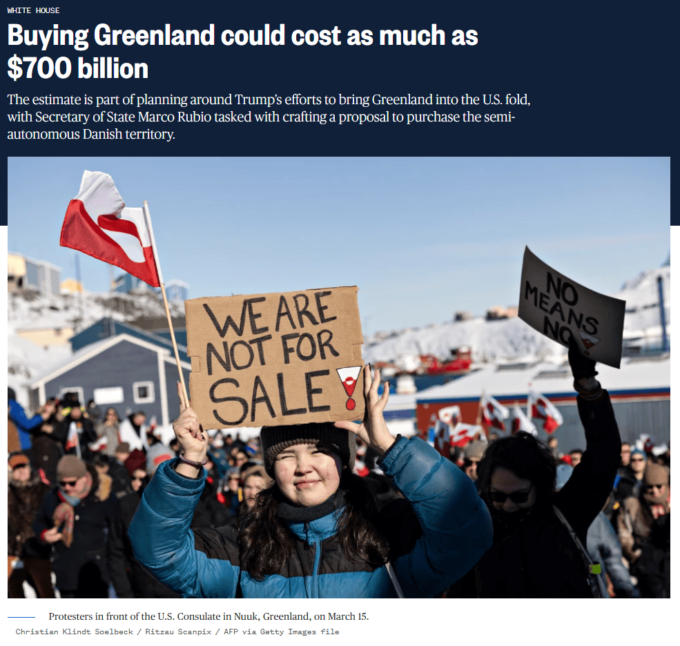 ●所谓“美国即将敲定高达7000亿美元的现金收购方案,从丹麦手中直接购买格陵兰岛”的说法不可信。“7000亿美元”这一数字仅为“学者和前官员”做的成本估算,尚未以任何书面形式获得美国国会的认可。