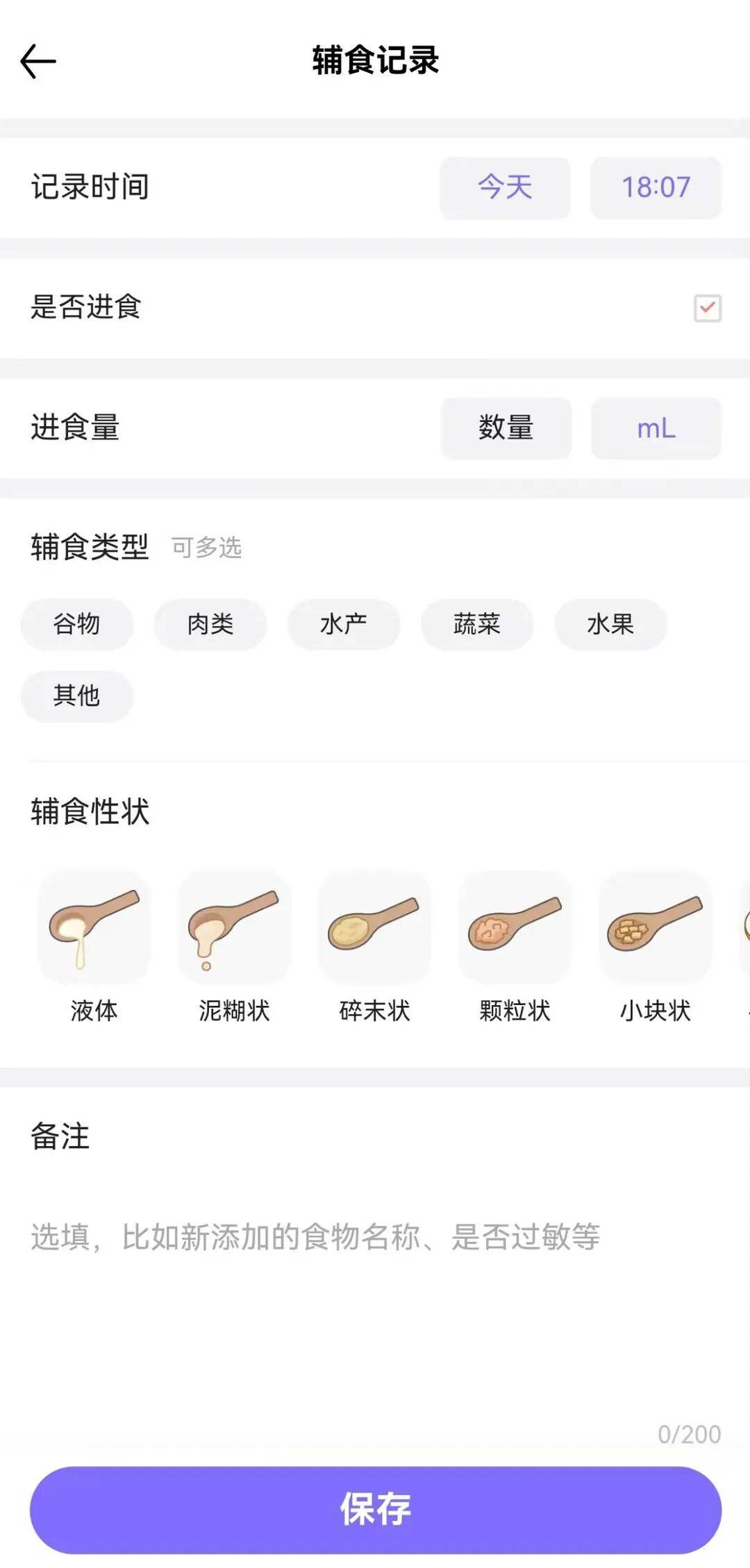 · 记录「宝宝辅食」时,不用手写,,即可完成记录;