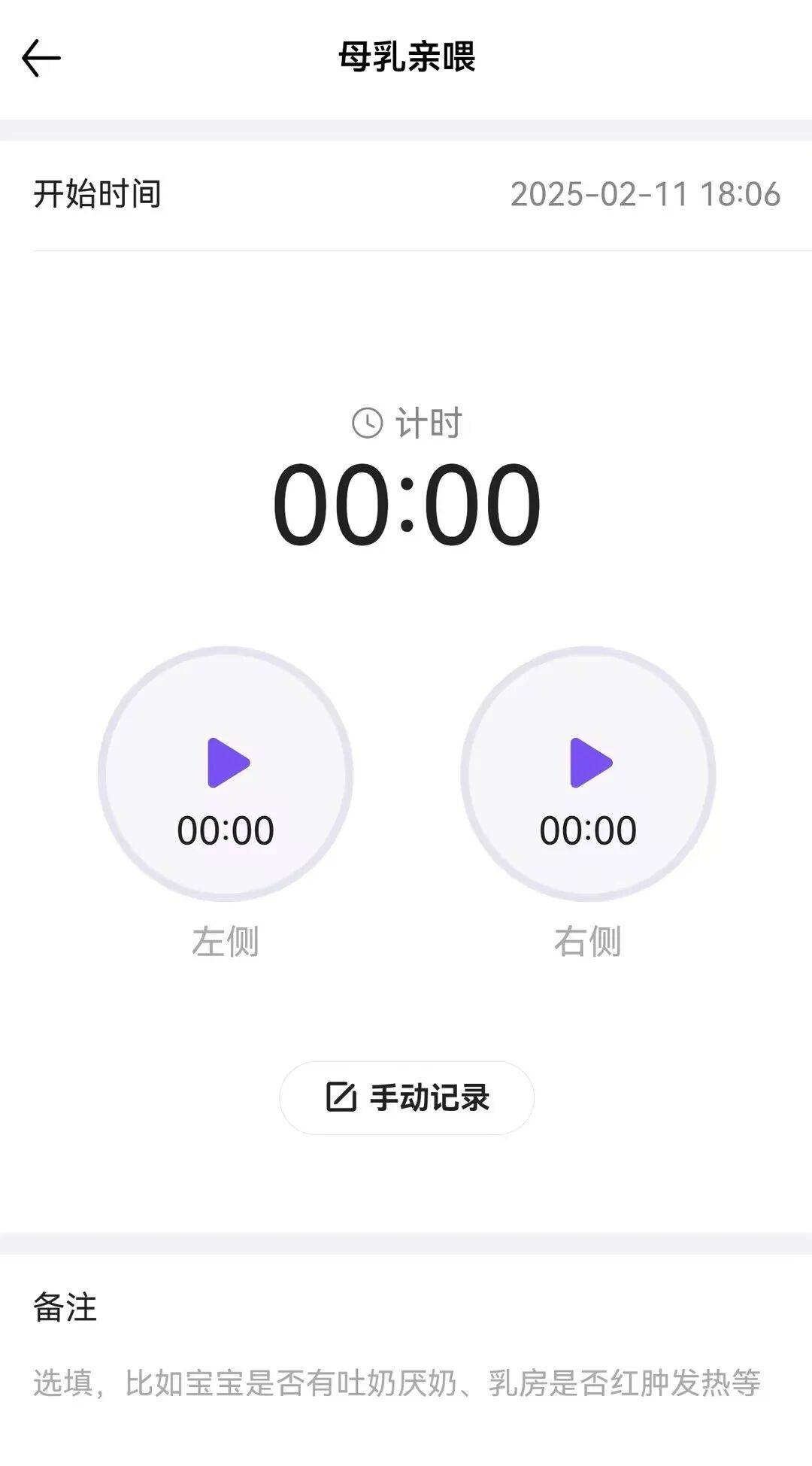 · 记录「母乳亲喂」时,点击小按钮就能自动计时;