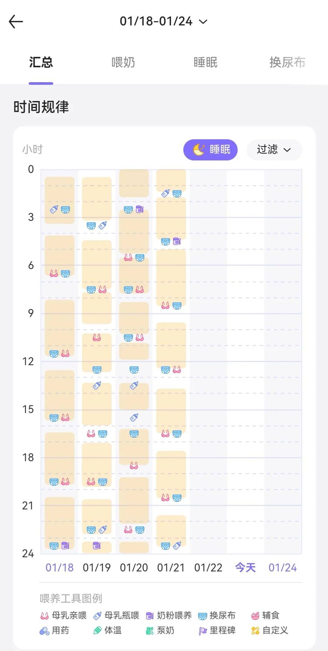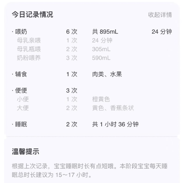 如果说可视化图表可以看到宝宝的大概规律,那么每日记录汇总,则是对宝宝日常更细致的解读。