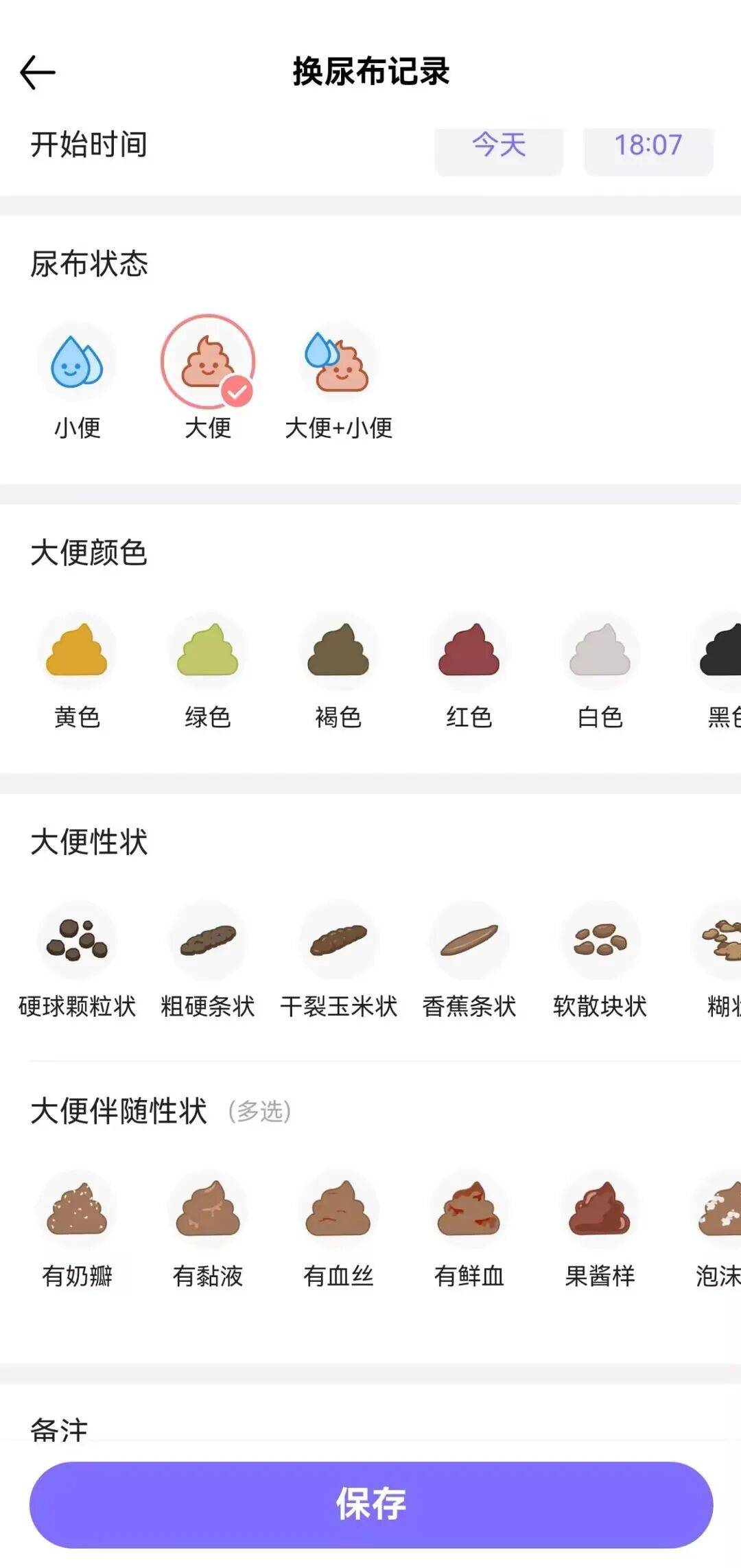 · 记录「宝宝换尿布」时,选择可爱又形象的小图标,也能 1 秒搞定~