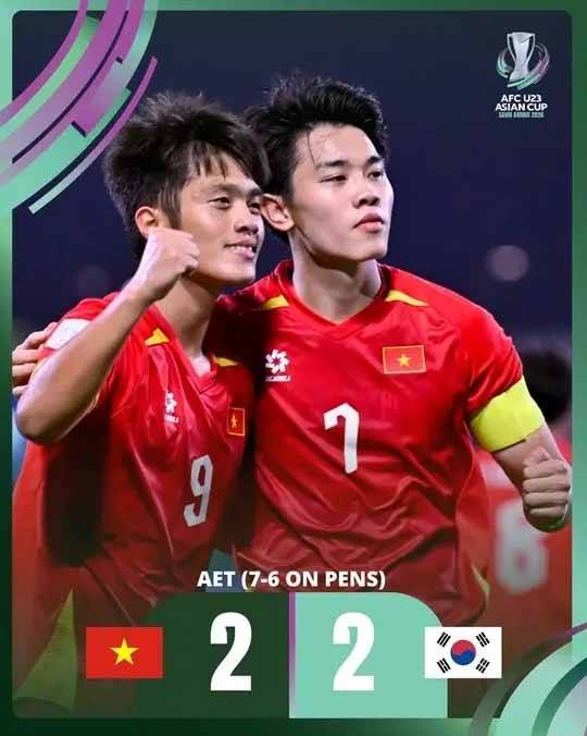 点球大战中,双方前六轮全部命中。第七轮,韩国队裴炫瑞的点球被越南门将高文平扑出,随后阮清闲冷静罚进制胜球。越南点球大战7-6取胜,总比分9-8击败韩国,历史性夺得U23亚洲杯季军。