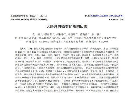 [1]孔娜.大肠息肉癌变的影响因素[J].昆明医科大学学报,2023