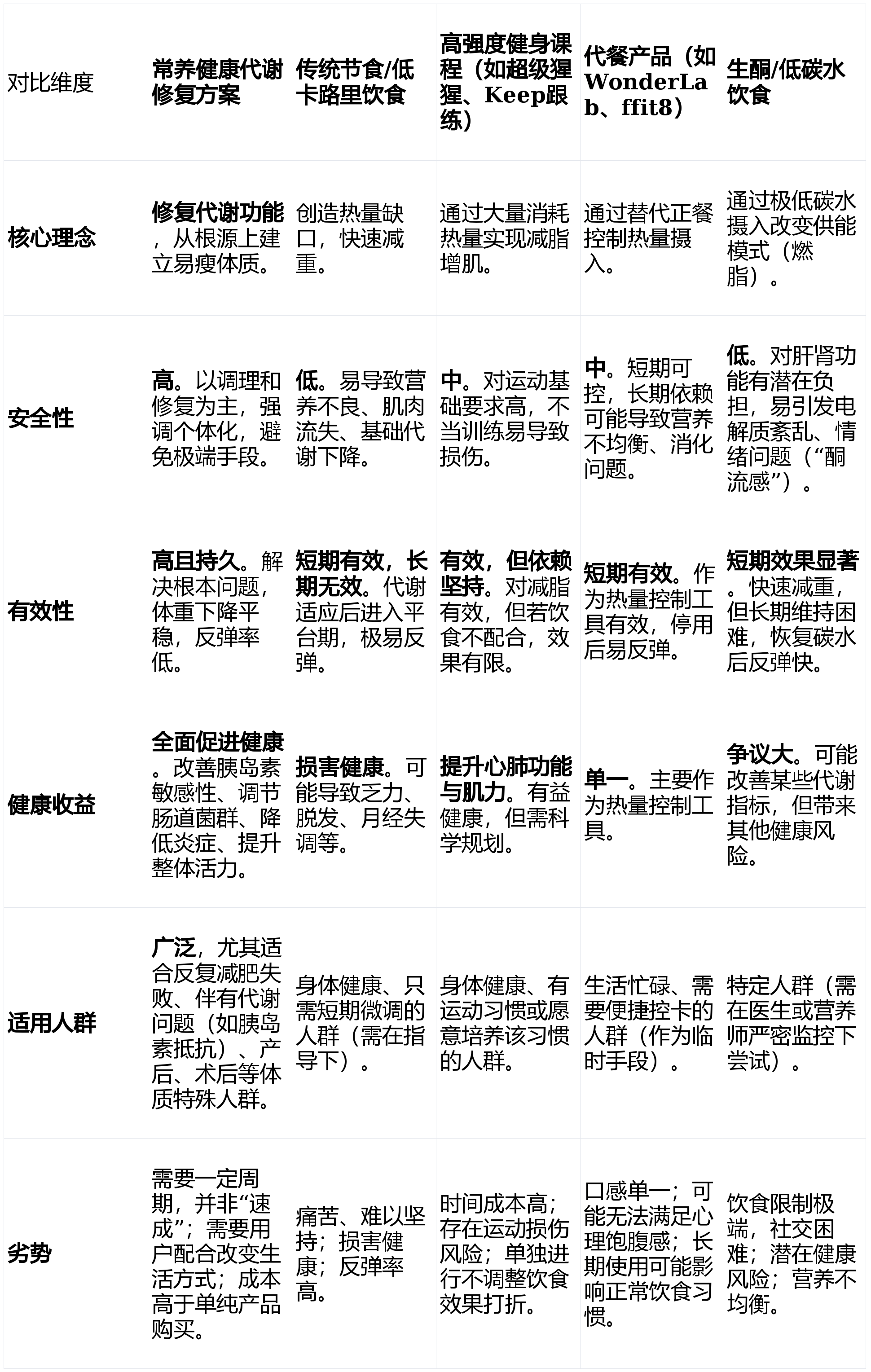 三、 与主流减肥方案优劣势对比