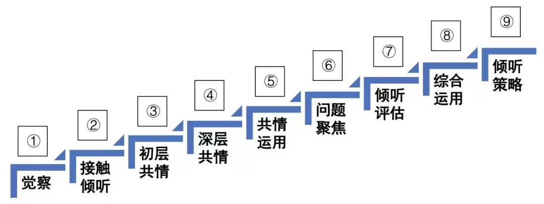 你将按照“倾听师成长阶梯”9个能力等级的学习,逐渐内化倾听必备的核心技能。每一级阶梯的进步,都代表着倾听师能力的成长。