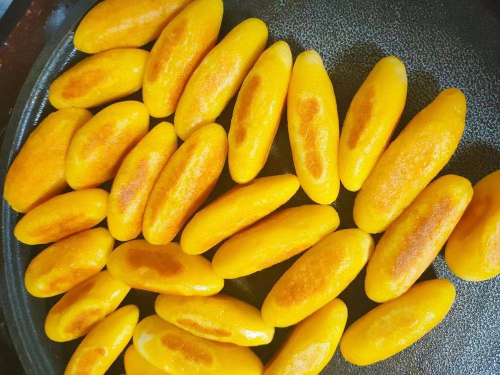 4、把电饼铛先热透,将其一一摆到里边,然后盖住去加热,过一会儿就翻翻面,直到我们用铲子去压的时候,可以很快弹起来,这时候就熟透了。一一夹出来即可上桌。软糯甜香的,好吃暖人又强身。