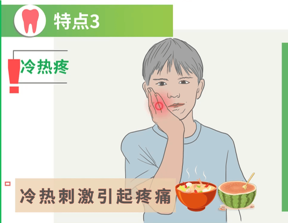 急性牙髓炎对冷、热刺激特别敏感,一碰到就会突发疼痛;到了炎症晚期,牙髓化脓后,会变成“怕热不怕冷”,用冷水敷反而能缓解疼痛,很多急诊病人都会抱着冰水瓶捂着脸来就诊。