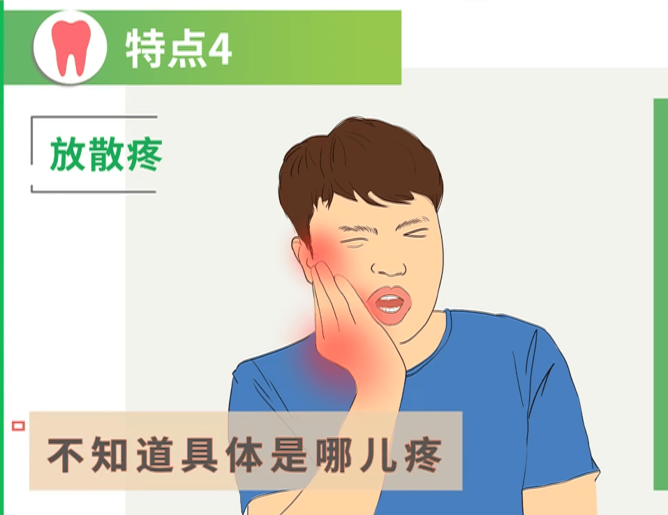 除了牙疼,还有人会表现为胃疼、腹胀、头痛、脖子疼、腿疼等。这是因为每个人的神经分布不同,疼痛的“表现形式”也不一样。