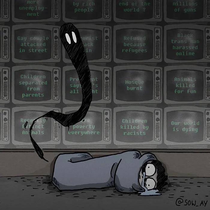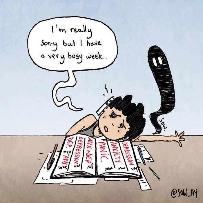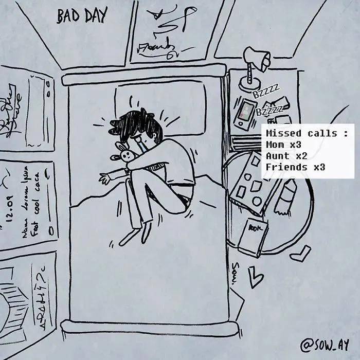 国外漫画师 Sow Ay,将自己在抑郁症状态下那些难以言说的感受,以漫画形式生动记录下来。
