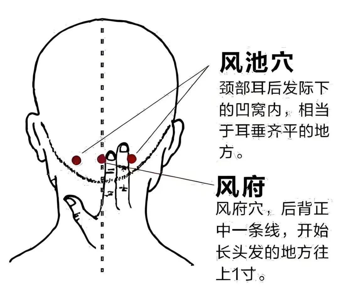 - 风府穴:位于头部后方,是风邪容易侵袭的部位,受到寒风影响时,这个穴位往往最先受波及。