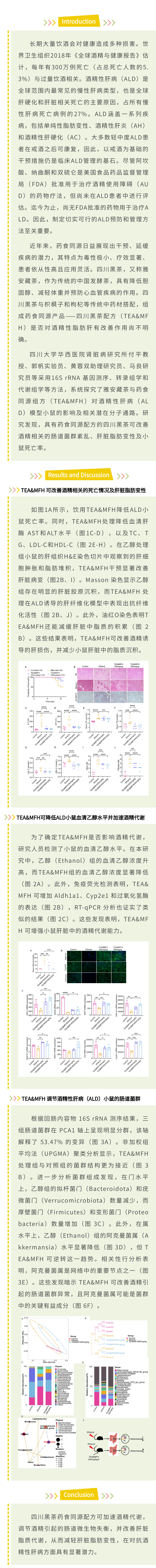 该研究首次通过系统科学实验证实,四川黑茶药食同源配方 可加速酒精代谢,调节酒精引起的肠道微生物失衡,并改善肝脏脂质代谢,从而减轻肝脏脂肪变性, 在对抗酒精性肝病方面具有显著潜力。