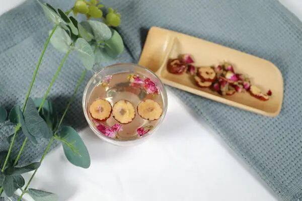 玫瑰花性温味甘微苦,具有行气解郁、和血止痛的功效,能疏肝理气,改善因肝气郁结导致的情绪不畅、胸闷胀痛。单独取5-8朵玫瑰花用沸水冲泡,也可搭配少量山楂,增强消食化积作用,适合女性及情绪压力大的人群。