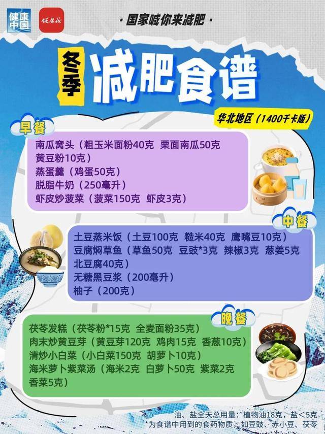 冬季减肥期间该怎么吃?国家卫健委此前印发的《成人肥胖食养指南(2024版)》已在饮食方面给出了权威解读。专家们不仅给出成人肥胖的食养原则和建议,还为全国七个地区的肥胖人群定制了个性化的四季减肥食谱!正值冬季,这份食谱请查收↓