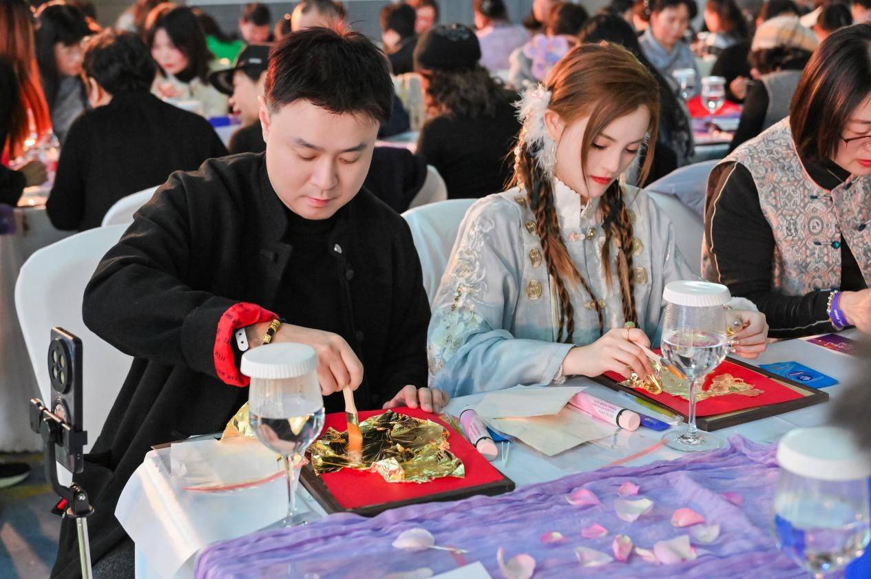 下半场“赋活芯生”篇章更注重内在沉淀与生活美学的建构。在舒缓的音乐中,来宾们亲手体验了“金箔贴画”DIY手作,金箔在东方文化中象征不朽,参与者以专注为笔,将祝福与愿景贴入画中,于方寸之间完成了一次与传统美学对话、与自我内心和解的宁静修行。朱钇冰先生再度登台,进一步拆解“三调养、四合理”的平衡智慧,详解如何将其与日常仪式感结合,让科学养生自然融入三餐、作息、运动等生活场景,成为无需刻意坚持的生活习惯,让“新平衡主义”成为更多人的生活点滴。