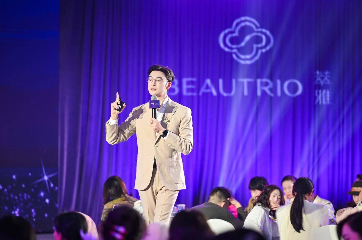 养固健延衰达人朱钇冰的登场,带来本次重磅新品,更将活动推向首个高潮。他从中医经典“女七男八”的生命节律理论出发,深入浅出地阐述了顺应时节、内调外养对于维持身体平衡和生活平衡的重要性,系统阐述了“内调外养”、“四合理”的平衡养生哲学。分享中,他更是引出本次活动的重磅新品——萃雅美姿力胶原蛋白肽饮,并通过一段制作精良的TVC,生动展示了产品如何将“神仙驻颜延年方”的古方智慧与现代科技完美融合。新品体验环节设计巧妙,充满互动仪式感,全场共同举杯试饮新品。现场多位来宾对其便捷包装与安心配方表示赞赏:“便携包装适配日常场景,安心配方让人放心,恰好能成为每日养生仪式的一部分,轻松践行平衡生活。”
