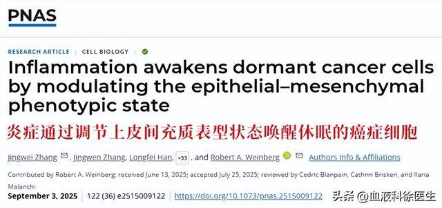 《PNAS》曾有一篇论文证实,以小鼠为实验对象的研究中,炎症反应会激活本该处于休眠状态的癌细胞,增加其活力,并发生分裂和转移。