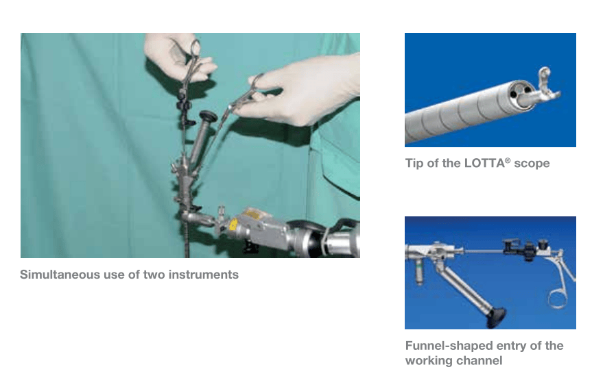 LOTTA脑室镜将照明、冲洗和多个独立工作通道集成于单一纤细鞘管内,可在仅一个颅骨钻孔下,为脑室内深部病变(如第三脑室胶样囊肿)的切除提供清晰视野和流畅的多器械协同操作,是实现高精度、微创脑室手术的重要工具,特别适合在有限空间内完成复杂分离与止血操作。