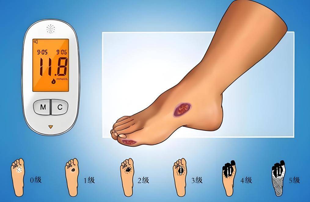流行病学调查显示,约 60.3% 的糖尿病患者会出现神经病变。下肢远端神经异常与血管病变结合,会导致足部感染、溃疡、组织破坏,且伤口难以愈合,严重时需截肢。糖尿病足造成的截肢,占非创伤性截肢的 2/3,全球每 20 秒钟就有一人因糖尿病失去一只脚。