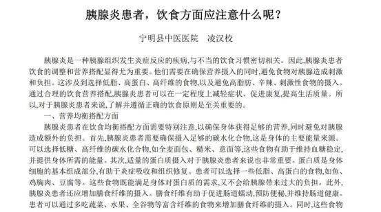 [1]凌汉校.胰腺炎患者,饮食方面应注意什么呢?[N].医药养生保健报,2024-04-22