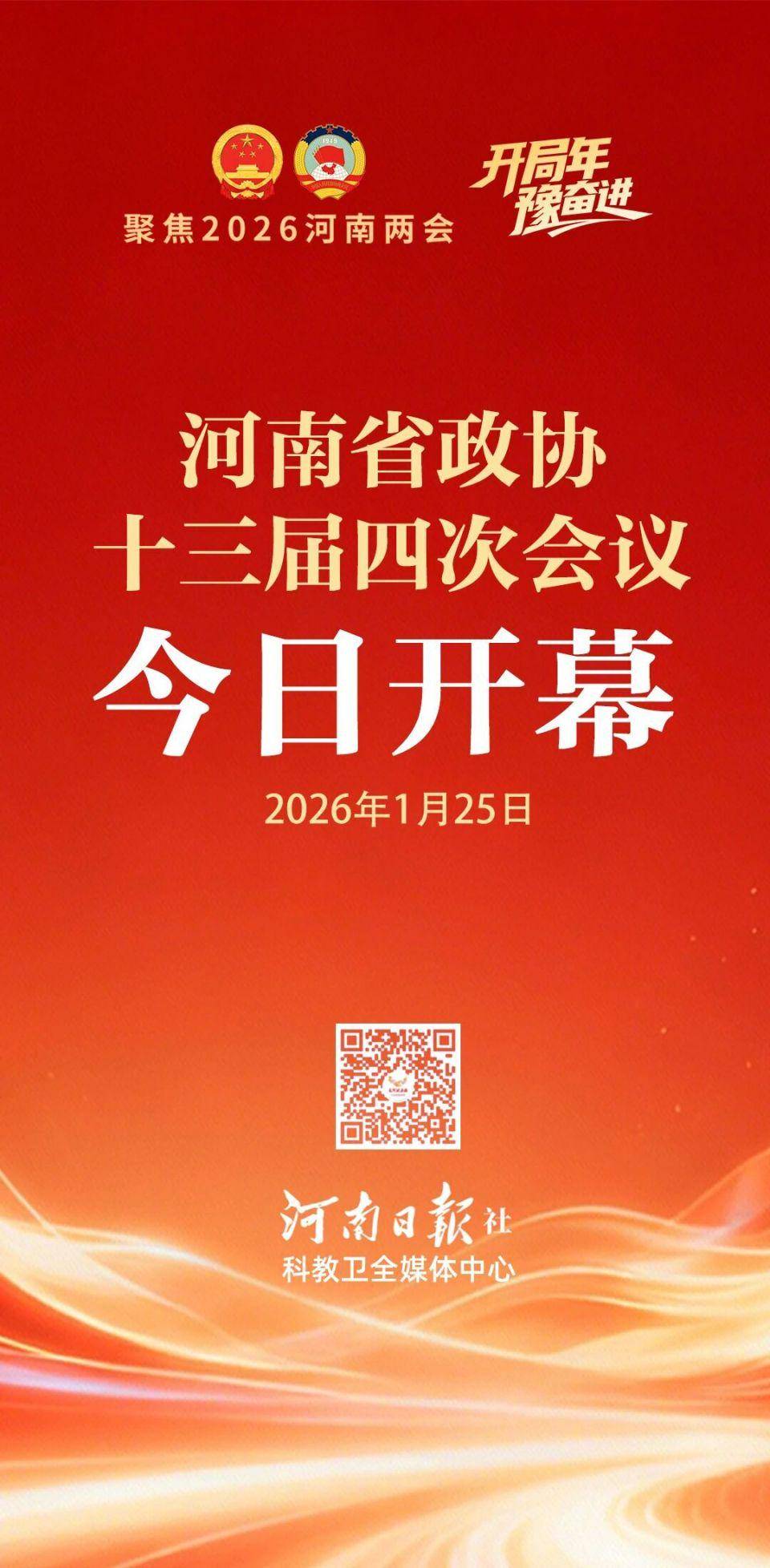 1月25日上午,中国人民政治协商会议第十三届河南省委员会第四次会议在省人民会堂隆重开幕。本次会议为期4天半。