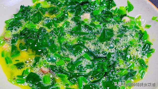 第三步:将菠菜切成碎末后放入碗中,然后将鸡蛋和食盐放入碗中,将它们搅拌均匀即可备用。