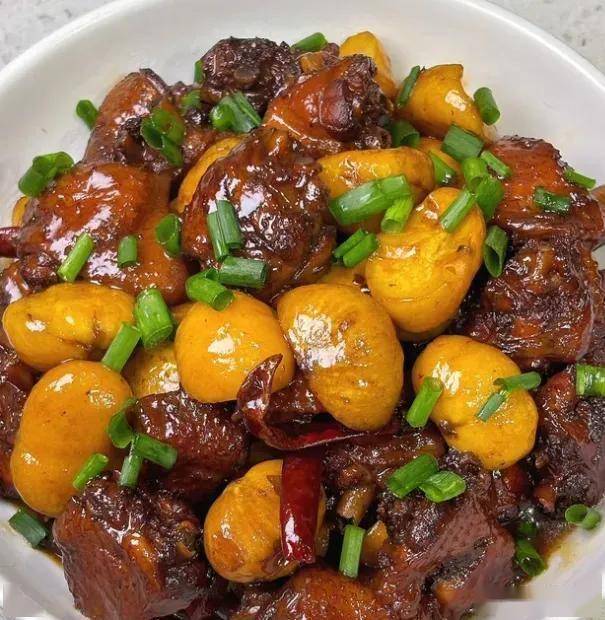 教您个新吃法——【板栗烧鸡翅】。鸡翅划刀后用料酒腌半小时,板栗剥壳焯水备用。热锅凉油爆香葱姜,鸡翅煎到两面金黄,加生抽、老抽和冰糖炒出糖色。倒热水没过食材,加板栗小火焖20分钟,最后大火收汁。 板栗吸饱了肉汁变得绵软香甜,鸡翅带着坚果香,连汤汁拌饭都能多吃两碗