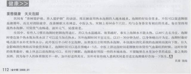 [1] 民康.要想健康天天泡脚[J].会计师,2009,(01):112.