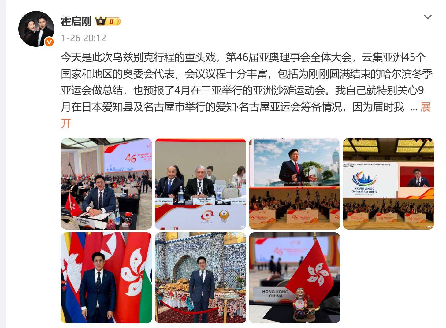 风波最烈的时候,大家都在等待霍家发声,想看他们如何压制舆论。然而霍启刚却选择了反公关。当时他正在乌兹别克斯坦参加国际会议,忙碌中他更新了一篇近千字的社交动态,详细分享了自己与各界人士的会面,以及为香港体育外交做出的贡献,一字未提代言风波。这种沉稳的处理方式,深含智慧。霍启刚没有把郭晶晶塑造成弱者,也没有借事件热度炒作,而是通过国际舞台的发声,展现了霍家超然的格局,突显了他们始终将体育与公益放在首位。