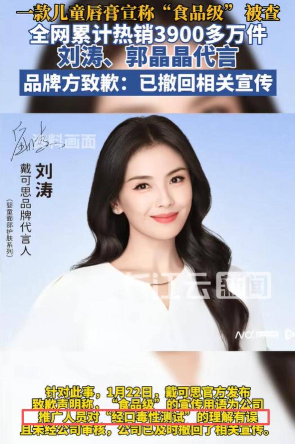 代言暴雷,郭晶晶无辜躺枪。眼看年关将近,婴童护理品牌戴可思被无锡市新吴区市场监管局立案调查,原因是其推出的一款儿童唇膏宣称食品级润唇膏宝宝误舔无忧,违反了《儿童化妆品监督管理规定》。这一事件迅速发酵,引发了广泛关注。
