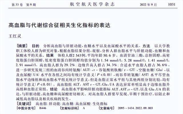高血脂与代谢综合征相关生化指标的表达,王红灵,航空航天医学杂志,2022-09-25