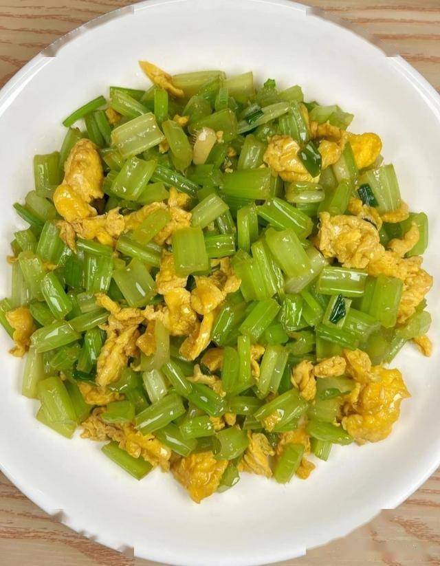 5. 最后把炒好的鸡蛋倒回锅里,和芹菜拌匀,翻炒两下就能出锅啦。