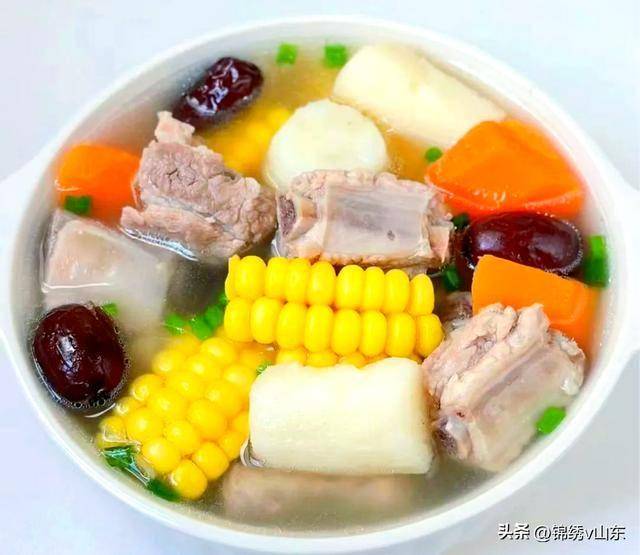 4. 加入玉米、胡萝卜,继续小火20分钟,汤渐呈清甜。