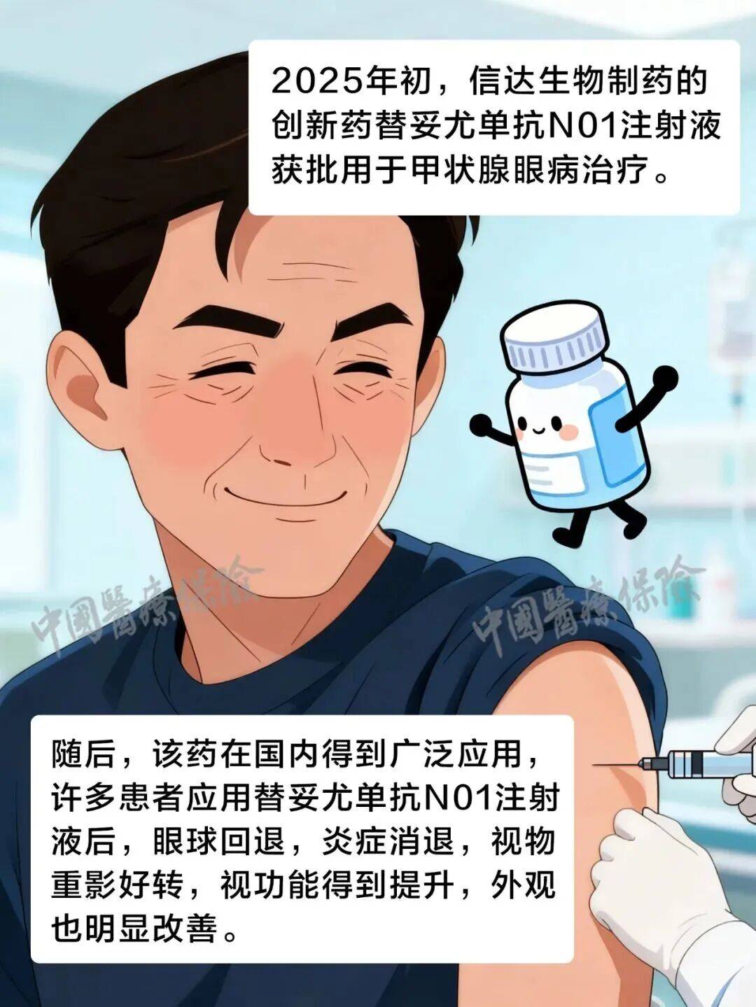 2026年1月1日起, 《国家基本医疗保险、生育保险和工伤保险药品目录(2025年)》在全国范围内正式实施,替妥尤单抗N01注射液在首都医科大学附属北京同仁医院眼整形科开出该药纳入医保后的北京首张处方。