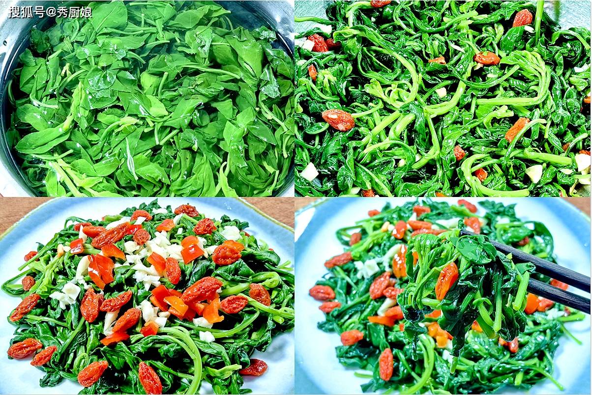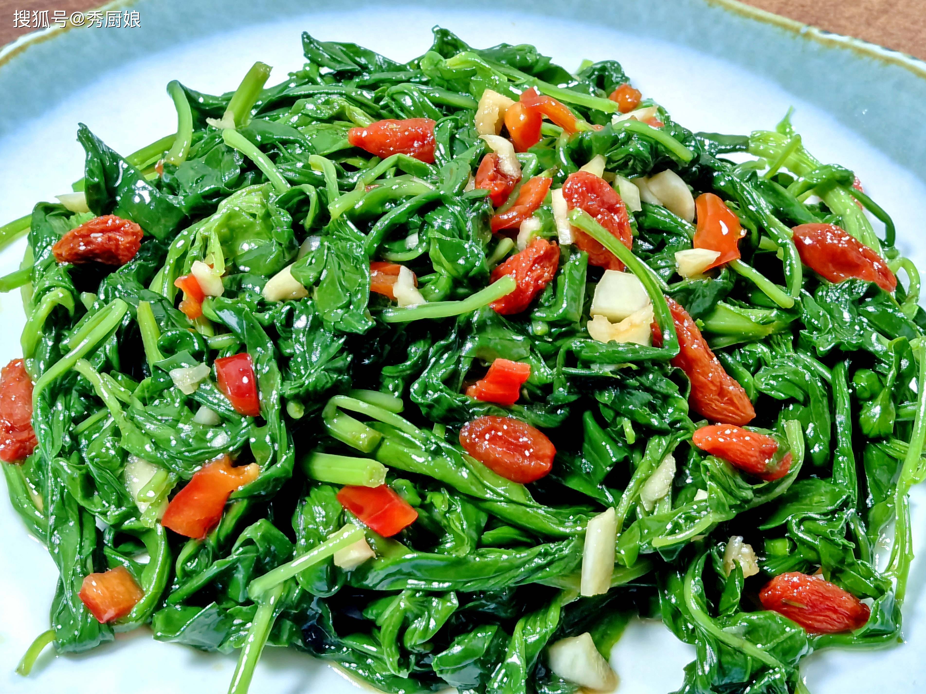 小贴士:如果买不到新鲜枸杞芽,有些大型超市或网上有卖,实在没有也可以用豌豆苗代替,但风味不同。