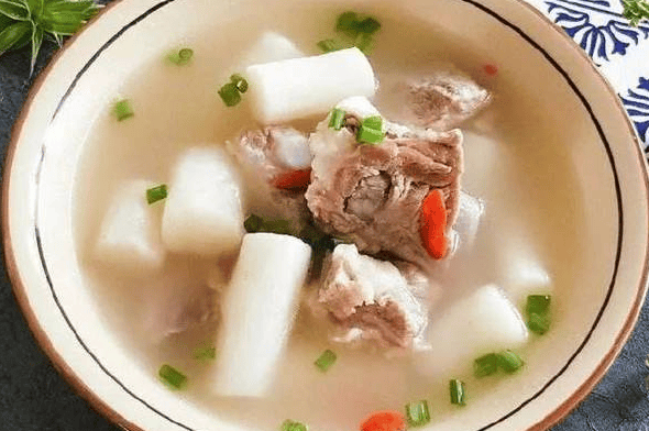 做法:排骨焯水后与茯苓、白术、红枣等同炖1.5小时,加盐调味。